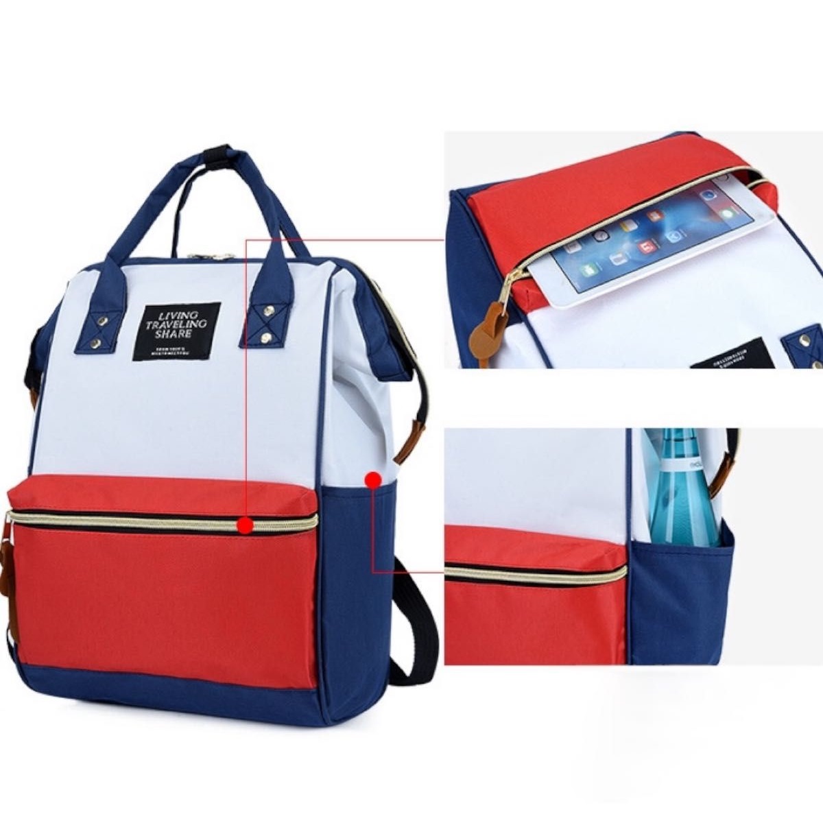 دهانه کوله پشتی با یک قاب فلزی شکل داده شده است تا به حفظ شکل و استحکام کوله پشتی کمک کند.